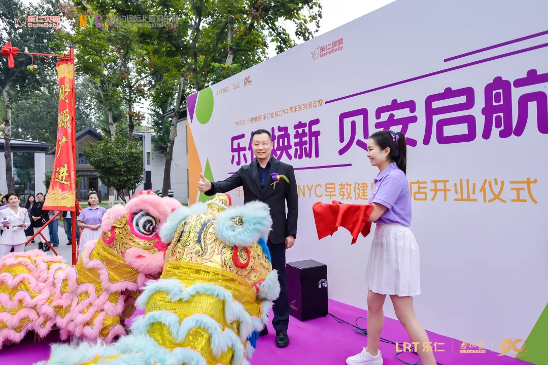 醒狮点睛与剪彩仪式中,乐仁堂集团董事长许双军为祥狮执笔点睛、采青纳福,寓意乐仁贝安鸿运启航。随后进行的剪彩更是将现场气氛推向新高潮,现场领导和嘉宾共同执剪,为乐仁贝安公司与NYC早教健康园店的开业剪彩,象征新程开启,前景辉煌。